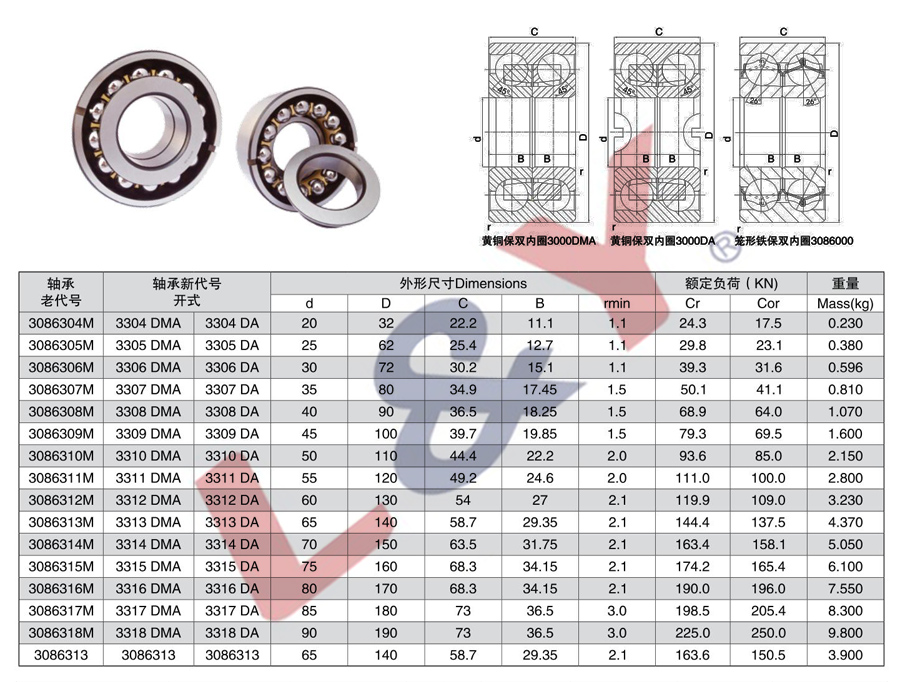 If there is a tilt angle between the inner and outer rings of the bearing, it will affect the life of the bearing, and at the same time, the bearing running accuracy will decrease and the running noise will increase. Double row angular contact ball bearings typically use a nylon cage or a brass solid cage. When installing double row angular contact ball bearings, it should be noted that although the bearing can bear the bidirectional axial load, if there is a ball gap on one side, care should be taken not to let the main axial load pass through the notched side groove. When using the bearing, care should be taken to bear the main load on the side raceway without the ball gap.