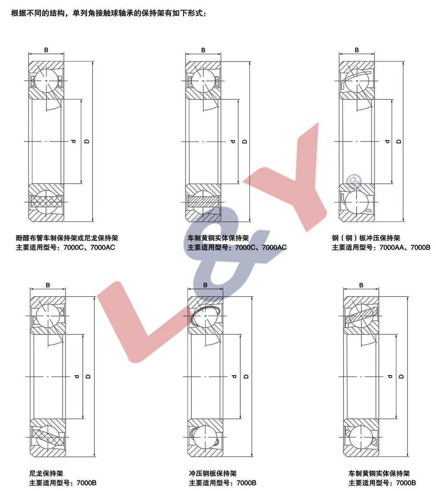 名称:胶布管保持架单列角接触球轴承C(15°)